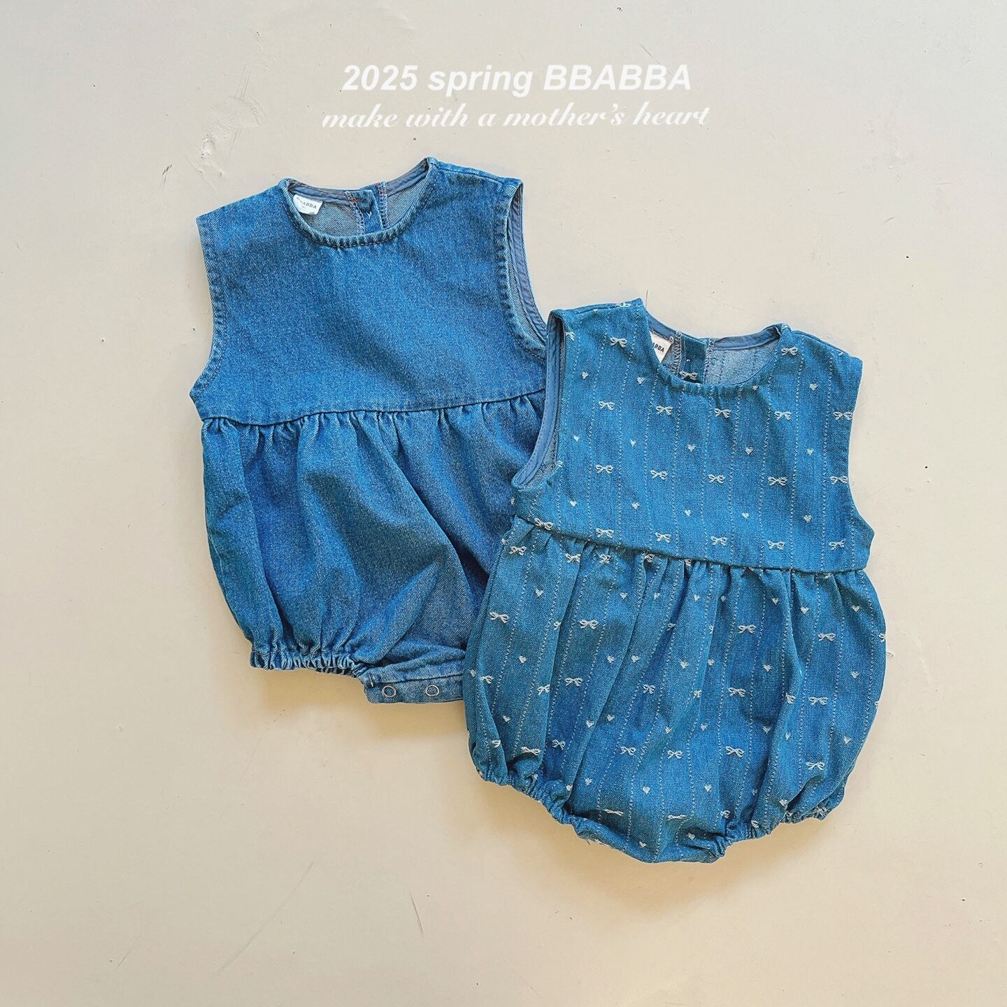 どこへでも着て行きやすい、どんな子でも似合うデニム生地のロンパース♡